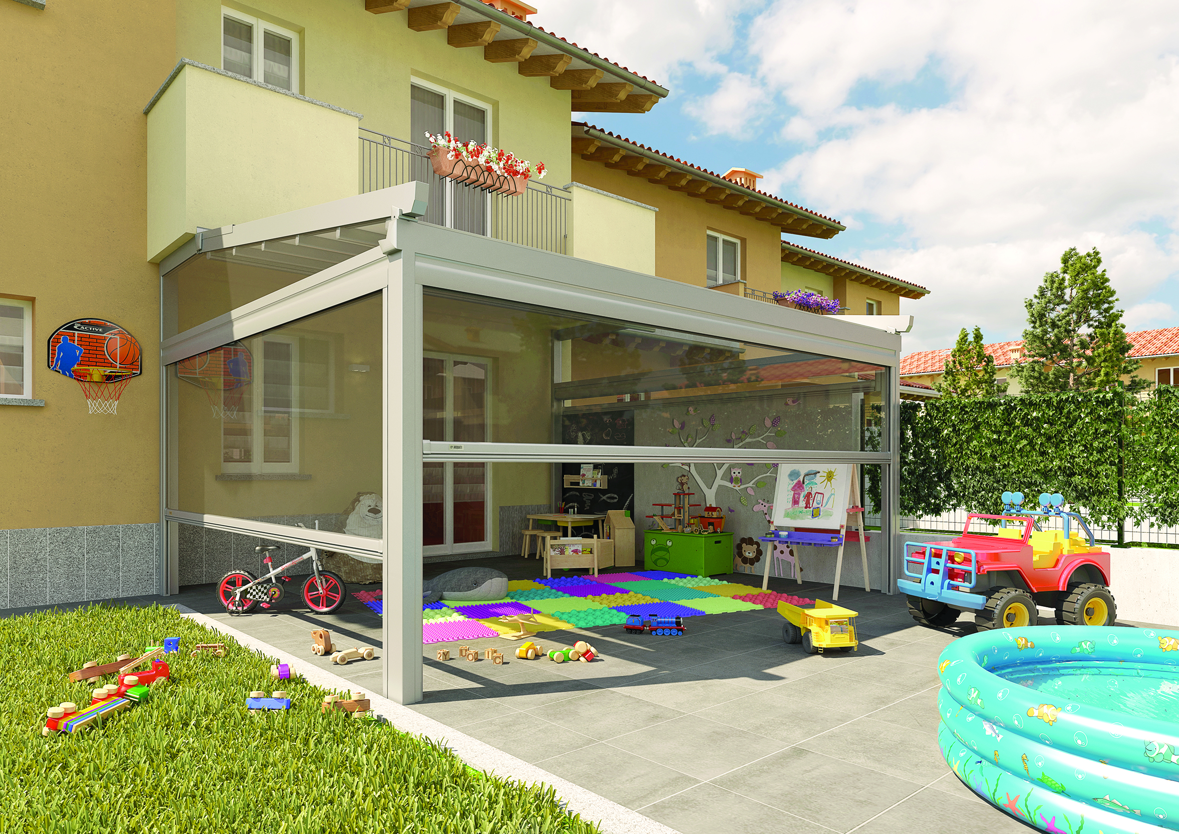 Design elegante, regolazione intelligente della luce e protezione dagli agenti atmosferici si uniscono in una struttura solida e durevole, interamente 100% Made in Italy. Il risultato è uno spazio esterno che diventa parte integrante della casa, pensato per essere vissuto ogni giorno.